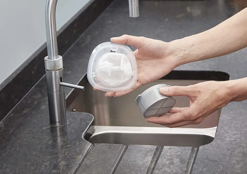 - Schmutzfangbehälter: Lässt sich auf Knopfdruck einfach entfernen und ist spülmaschinenfest.