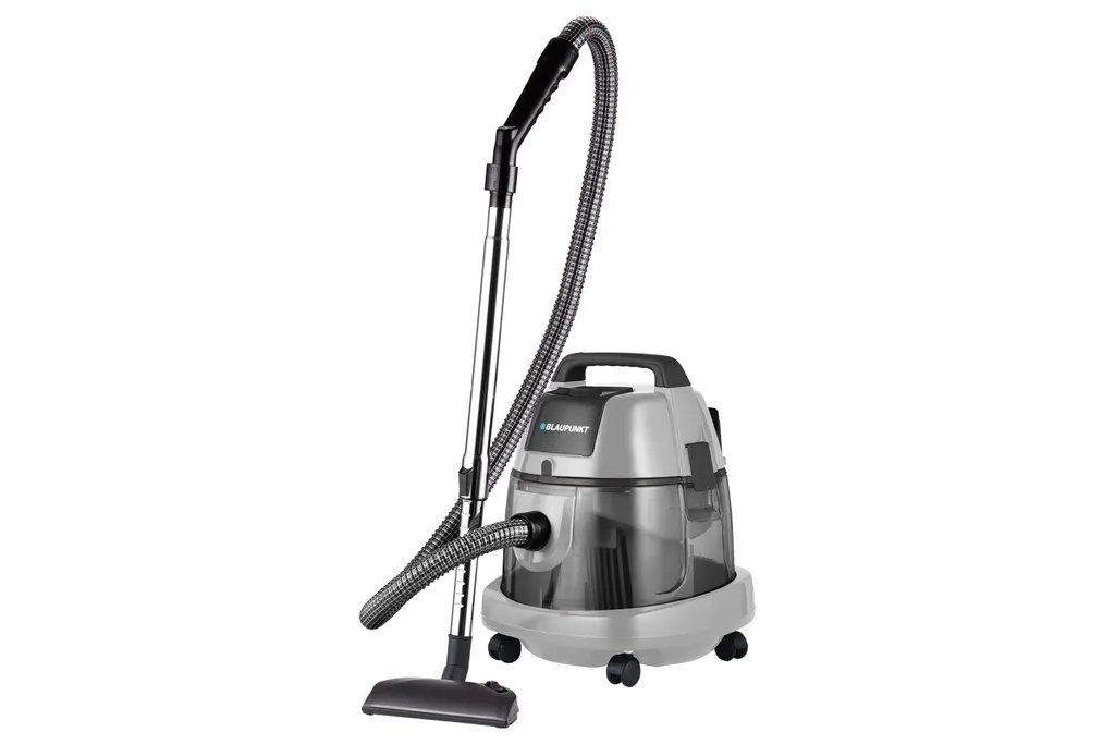 Der Blaupunkt VCW401 bietet Nass- und traditionelles Trockensaugen mit einem 20-Liter-Staubbehälter, der ideal für die Reinigung größerer Wohnungen ist. Für eine hervorragende Saugleistung von bis zu 20 kPa sorgt ein leistungsstarker Motor mit 1500 W Nennleistung und einer maximalen Leistung von bis zu 2200 W bei sehr hoher Belastung. Der Reinigungsvorgang wird durch die drehbaren Räder für die Mobilität und die mitgelieferten Bürsten erheblich erleichtert. Neben der universellen Bodendüse stattet der Hersteller das Modell VCM401 mit einer Fugendüse und einer Polsterdüse aus. Das Metall-Teleskoprohr, der verstärkte Schlauch, das 5 m lange Netzkabel und der geräuscharme Betrieb von weniger als 80 dB runden den Bedienkomfort ab. Auch die Vielseitigkeit des VCW401 Staubsaugers spricht für ihn. Der Benutzer hat die Wahl zwischen Wasserfilterung und Staubsaugerbeutel. Außerdem verfügt der Staubsauger über eine Blasfunktion. Wenn Sie ein Rohr in den Luftauslass stecken, erhalten Sie ein praktisches Gebläse für den Einsatz in der Garage oder im Garten.