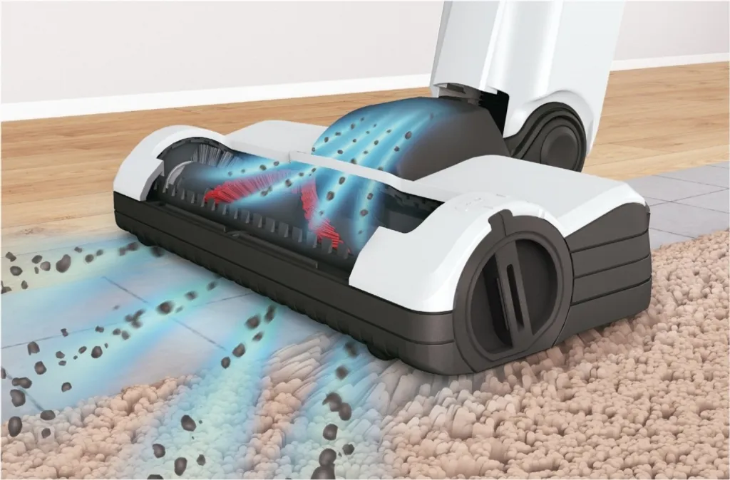 - So kraftvoll wie ein konventioneller Staubsauger* durch Steigerung der Motorleistung und Weiterentwicklung der AllFloor HighPower Brush