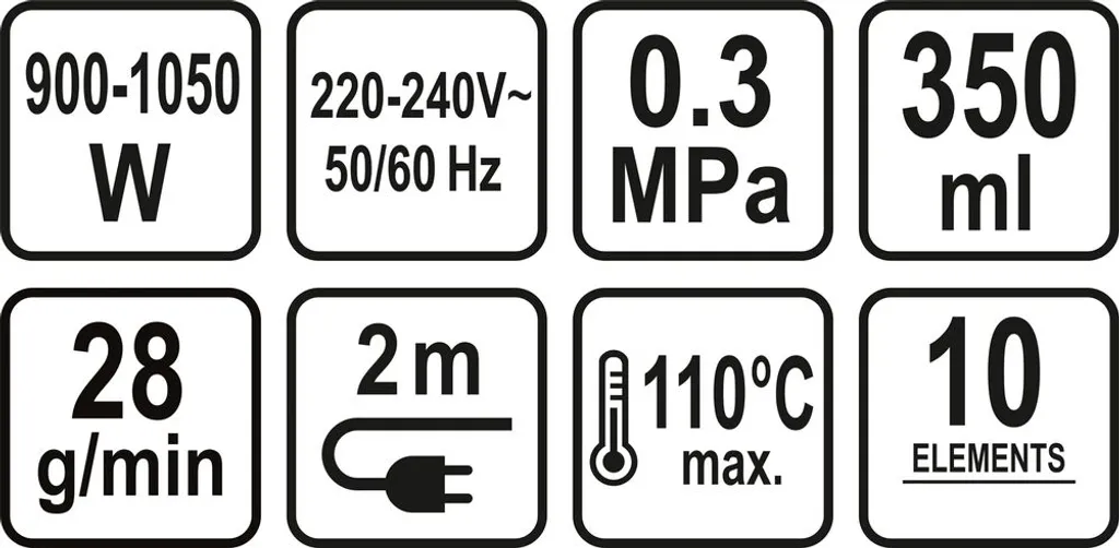 - Leistung: 900W-1050W, 220-240 V 50/60 Hz