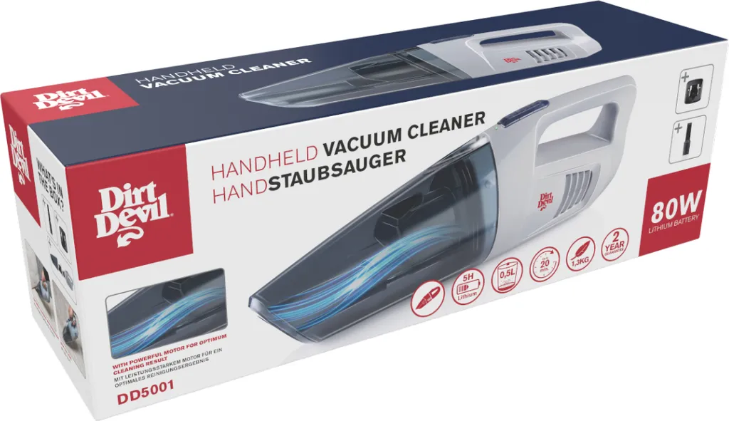 Dirt Devil Handstaubsauger DD5001 – 80W – Kabelloser Handsauger – Inkl. Wandhalterung Und Versenkter Bürste – Aufgeladen In 5 Stunden – 20 Minuten Akkulaufzeit – 0,5L Staubbehälter – Weiß