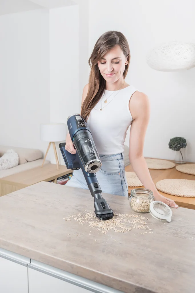 Mit einem Klick verwandeln Sie den Stielstaubsauger in ein praktisches Handgerät. Sie können es für die schnelle Reinigung nach dem Spielen der Kinder verwenden und es erleichtert Ihnen auch die Reinigung des Autoinnenraum.