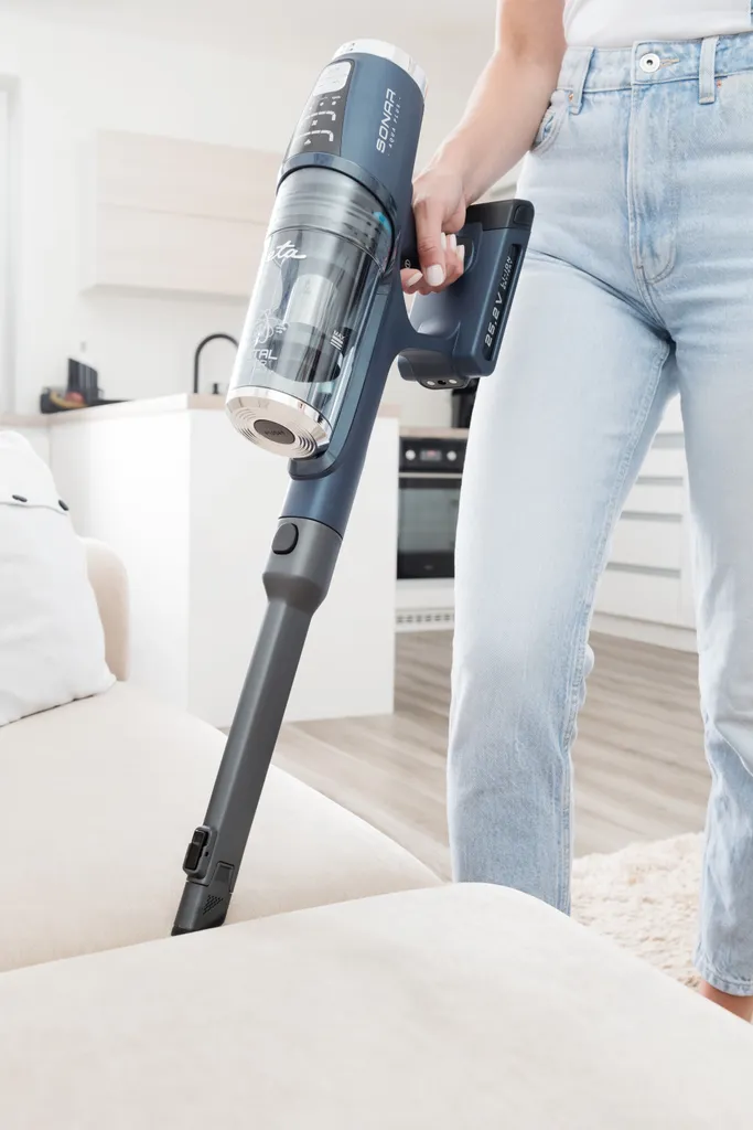 Genießen Sie die Freiheit der Bewegung ohne Kabel. Saugen Sie schnell und genau dort, wo Sie es brauchen. Der ETA Sonar Aqua Plus wiegt nur 3 kg, so dass das Staubsaugen zum Vergnügen wird.