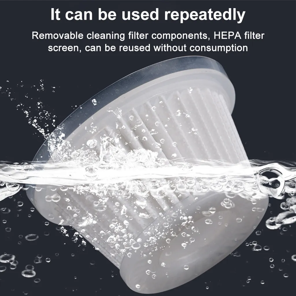 5. 【Wiederverwendbarer und waschbarer Filter】 : Der USB-Staubsauger nimmt das Staubbehälterdesign an und sein Filter entspricht dem Standard für hocheffiziente Partikelluft. Es ist leicht zu leeren, zu ersetzen und zu reinigen.