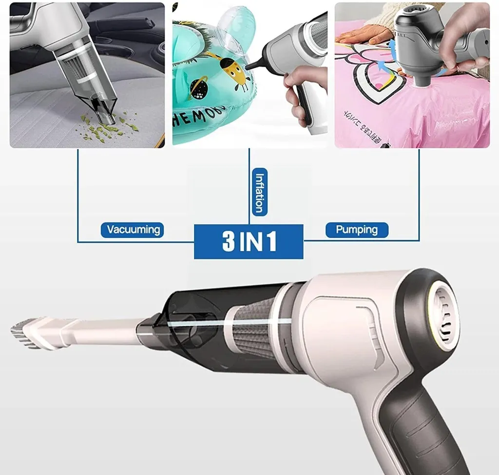 【3 In 1 Kabelloser Mini-Handstaubsauger】Drei in einem Nicht nur als Staubsauger für die Haus- und Autoinnenreinigung, sondern auch als Gebläse und Vakuumkompressor.