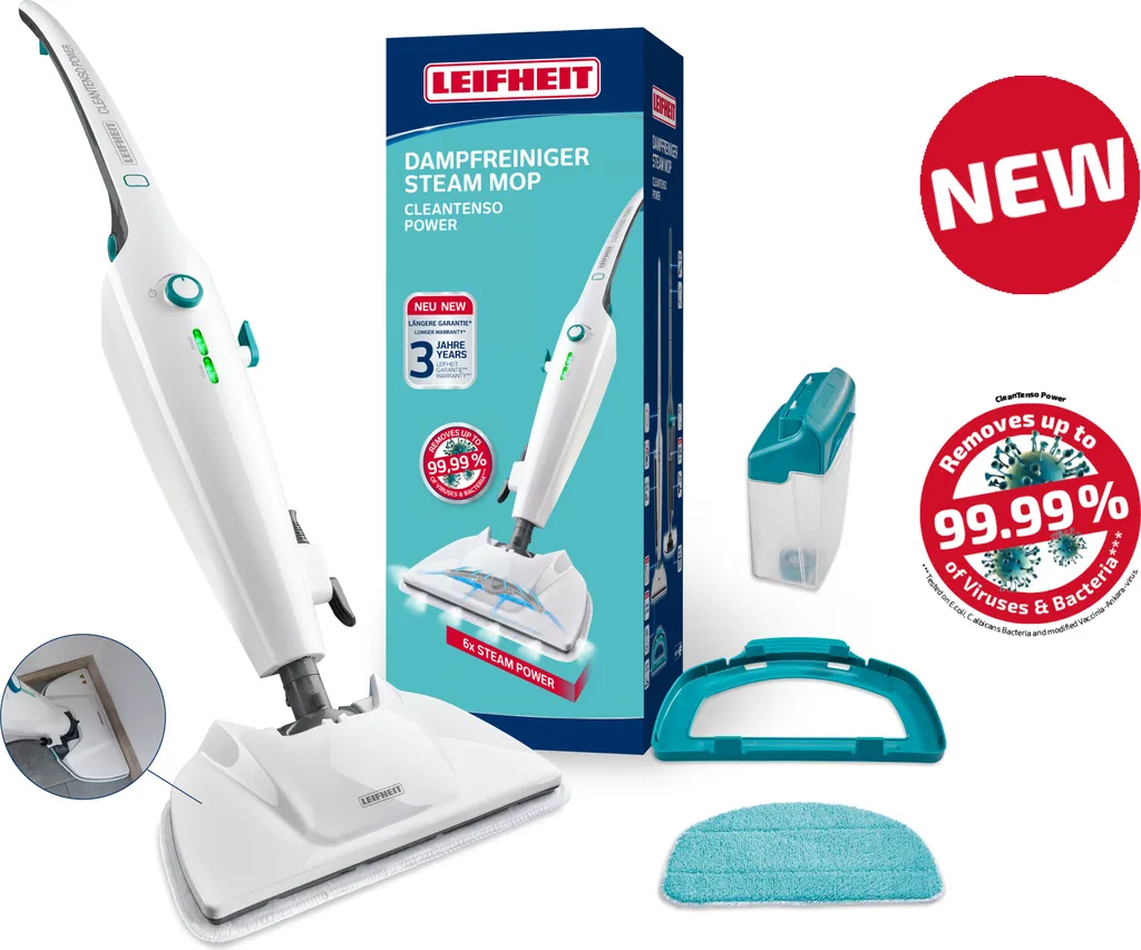 - Mit stufenloser Dampfeinstellung für optimale Feuchtigkeit auf unterschiedlichen Böden wie Stein, Fliesen, Laminat, PVC oder versiegelte Böden