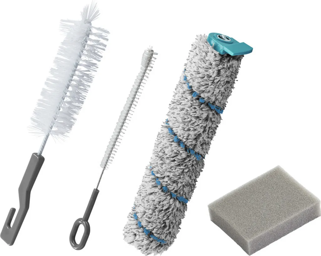 - Set bestehend aus: Reinigungswalze aus 100% Polyester (Mikrofaser), Schwammfilter, zwei Reinigungsbürsten