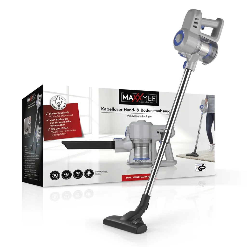 Schmutz, Krümel und Co. einfach wegsaugen – egal wo sie liegen! Mit dem kabellosen Hand- und Bodenstaubsauger von MAXXMEE kannst du normale Bodenstaubsauger entsorgen. Dieses Kraftpaket ist sowohl als Hand- als auch als Bodenstaubsauger einsetzbar und punktet in Sachen Handhabung, Flexibilität und Saugkraft.