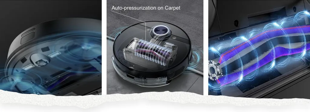 Der Saugroboter verfügt über 30 eingebaute Sensorsets, ein integriertes Kreiselsystem für einen 360°-Scan des gesamten Bereichs mit einem Bewegungserkennungssensor, erkennt und vermeidet Hindernisse und erkennt nasse Stellen für eine optimale Reinigung. Dank des 5,5 cm ultradünnen Gehäuses erreicht der Saugroboter problemlos jede Ecke und jede schmale Stelle.