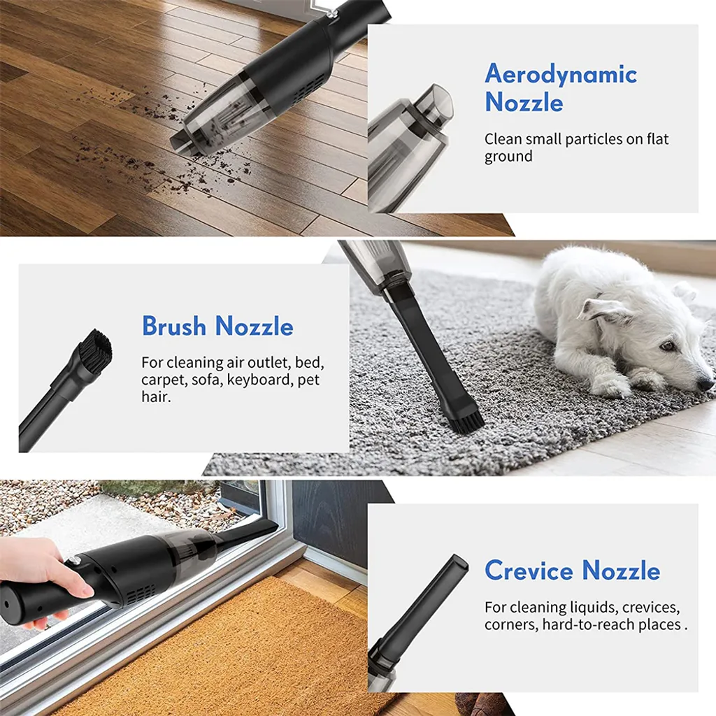 Vielseitig einsetzbar – Handstaubsauger kann zu Hause, im Büro, im Auto, im Badezimmer, im Teppich verwendet werden. Es wird Ihnen helfen, leicht Staub, Tierhaare, Sand, Speisereste, Flüssigkeiten, Schmutz zu reinigen, die in Kissen oder Sofa versteckt sind.