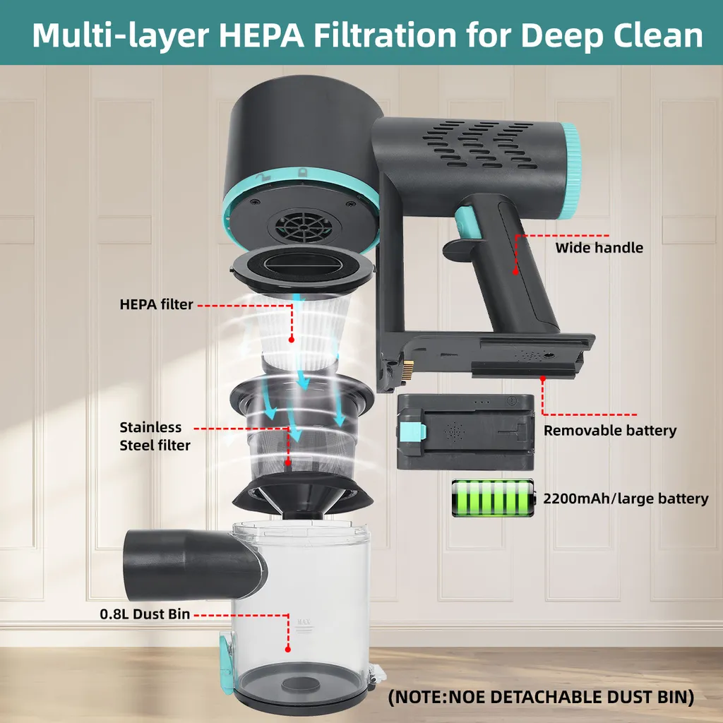 OSMOND 160W 12KPa Akku Handstaubsauger 3in1 Staubsauger Beutellos Kabellos