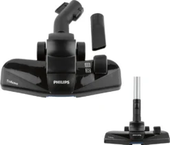 Im Griff ist ein Bürstenaufsatz integriert, sodass Sie ihn immer zur Hand haben und auf Möbeln, ebenen Flächen und Polstern verwenden können.