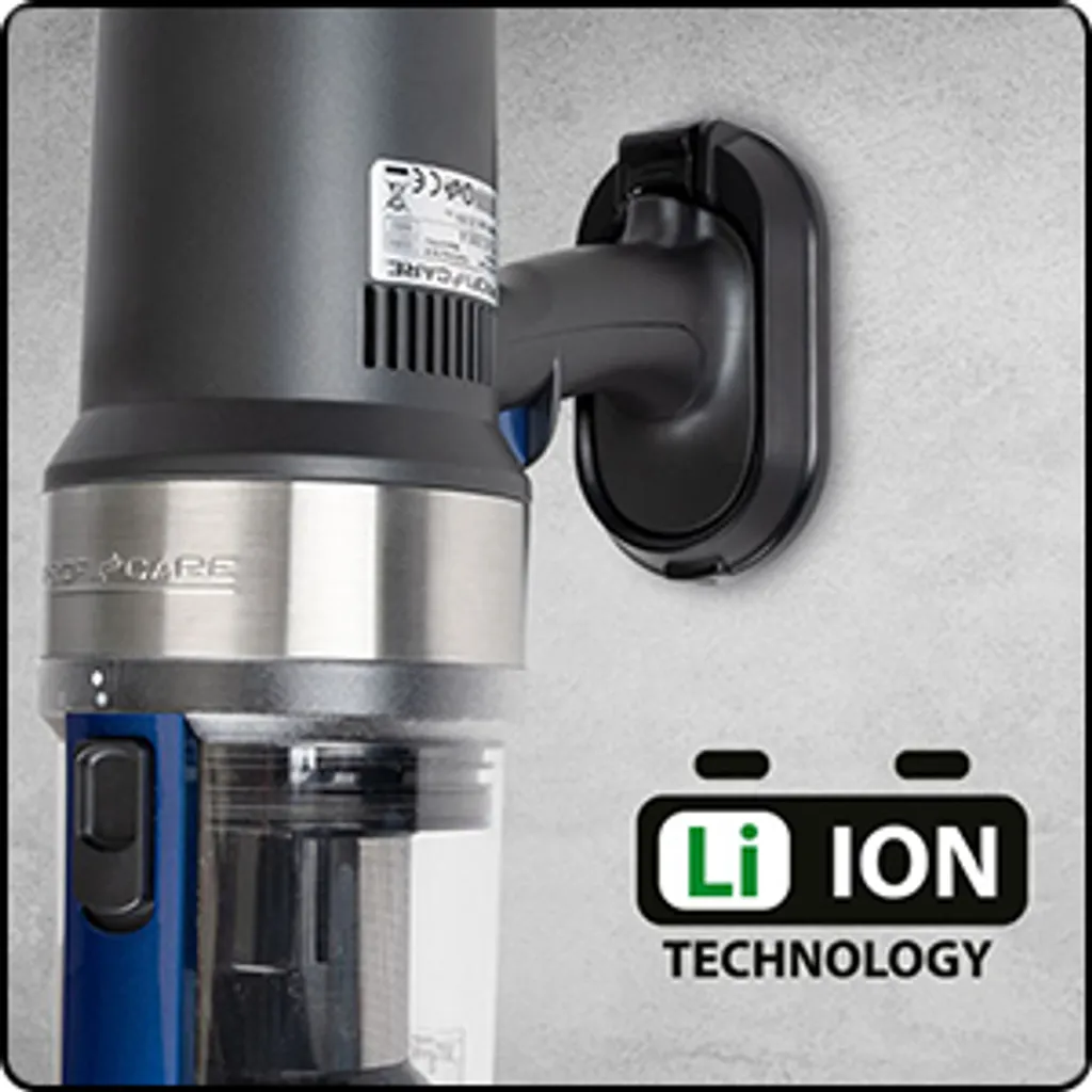 25,9 Volt Lithium-Ionen-Akku (2200 mAh) für kabelloses Reinigen — Bequeme Reinigung Ihrer kompletten Wohnung bzw. Ihres Hauses mit dem PC-BS 3085 A mit leistungsstarkem Akku. Mit einem Klick gelangen Sie vom Bodenstaubsauger zum Handstaubsauger. So können Sie bequem Möbel, Polster, Gardinen, Bücher oder Autositze absaugen.