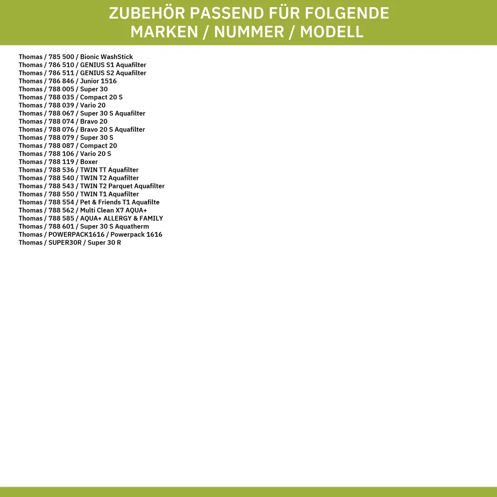 – geeignet zur Anwendung mit den folgenden THOMAS Geräten: