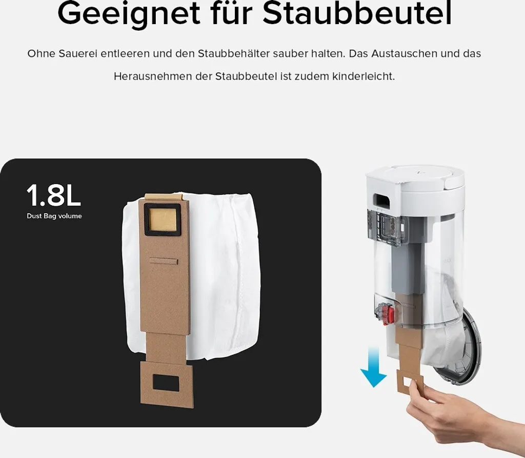 1,8-Liter-Staubbeutel-Unterstützung
