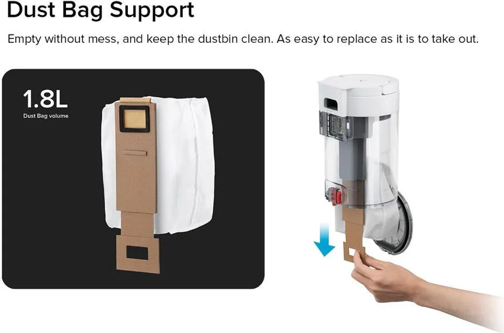 Warum die mühe zu reinigen die staub box selbst, refill und sammeln die staub automatisch, und freies ihre hände für 30 tage. Die filter effizienz der gesamten maschine ist höher als 99.99%, wie ein gebaut-in luftreiniger, ohne sich gedanken über die flucht von staub und allergene.