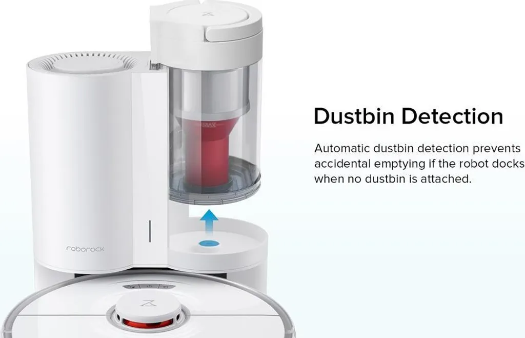 Die automatische Mülltonnenerkennung verhindert ein versehentliches Entleeren, wenn der Roboter andockt, wenn kein Mülleimer angebracht ist.