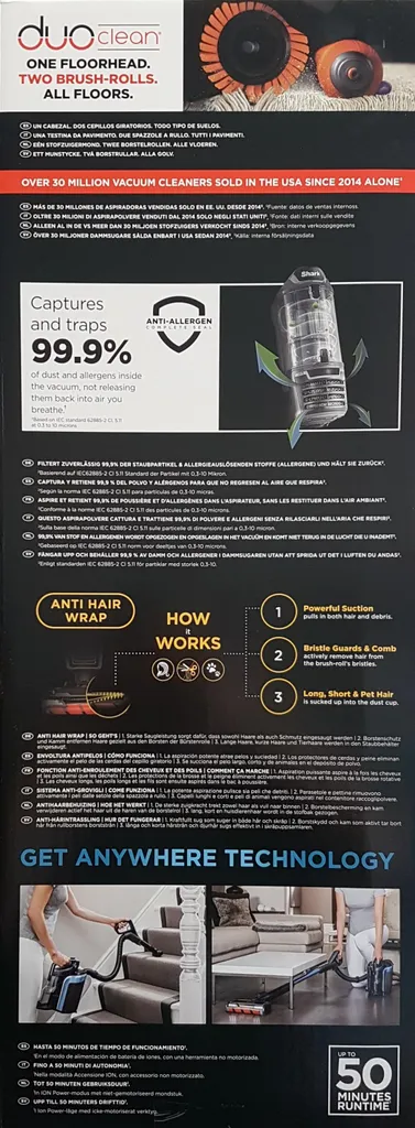 Reinigen Sie Teppiche und Hartböden mit der einzigartigen DuoClean-Bodendüse. Zusätzlich dazu sorgt die Anti Hair Wrap-Technologie aktiv dafür, dass sich während der Reinigung keine Haare in den Bürstenrollen verfangen können. Verwandeln Sie Ihr Gerät in einen kabellosen, leichten Handstaubsauger, um Treppen, Oberflächen und Ihr Auto zu reinigen. Freuen Sie sich auf bis zu 50 Minuten Laufzeit (Im Ionenakku-Modus, mit nicht motorisiertem Aufsatz) und laden Sie den herausnehmbaren Akku flexibel an jeder Steckdose.