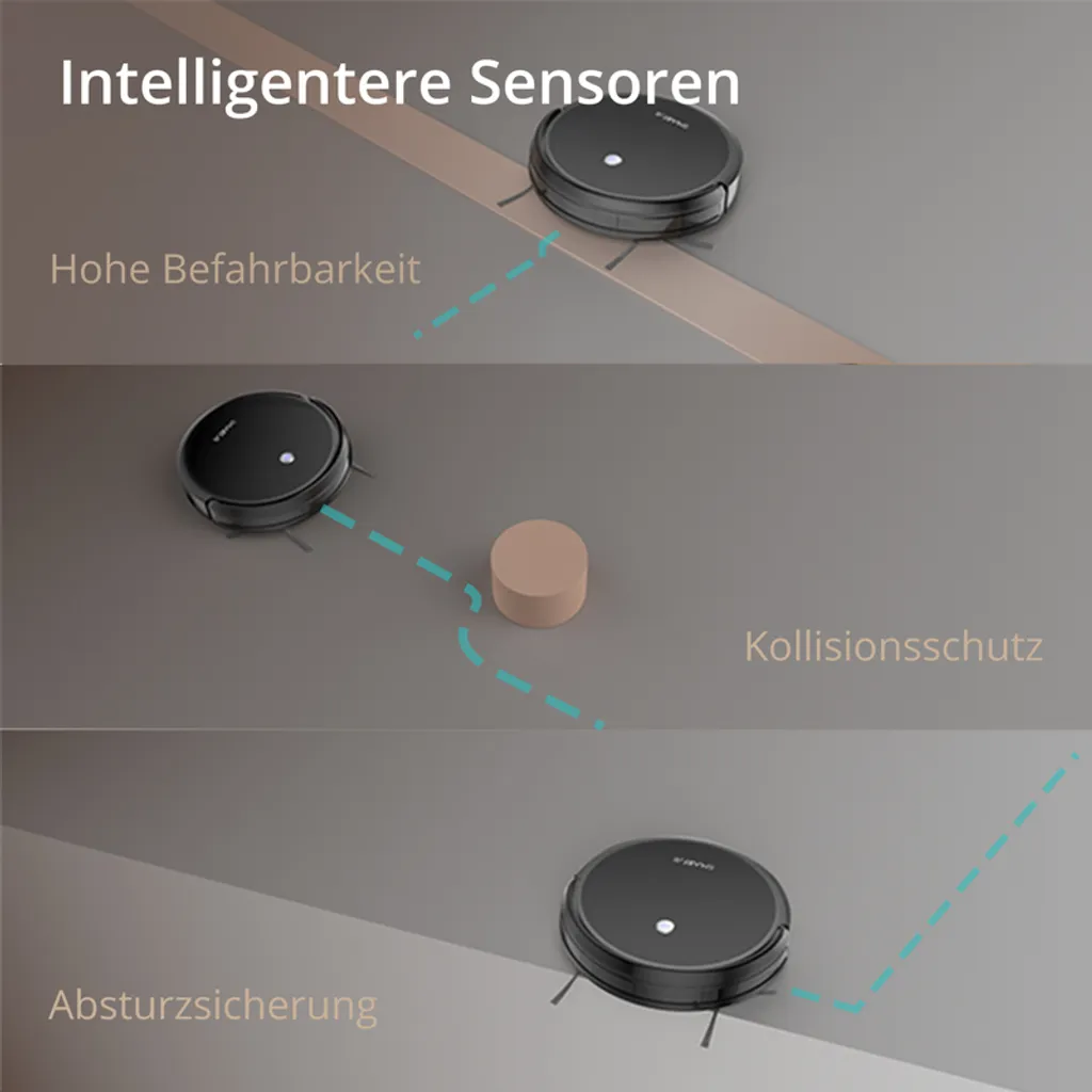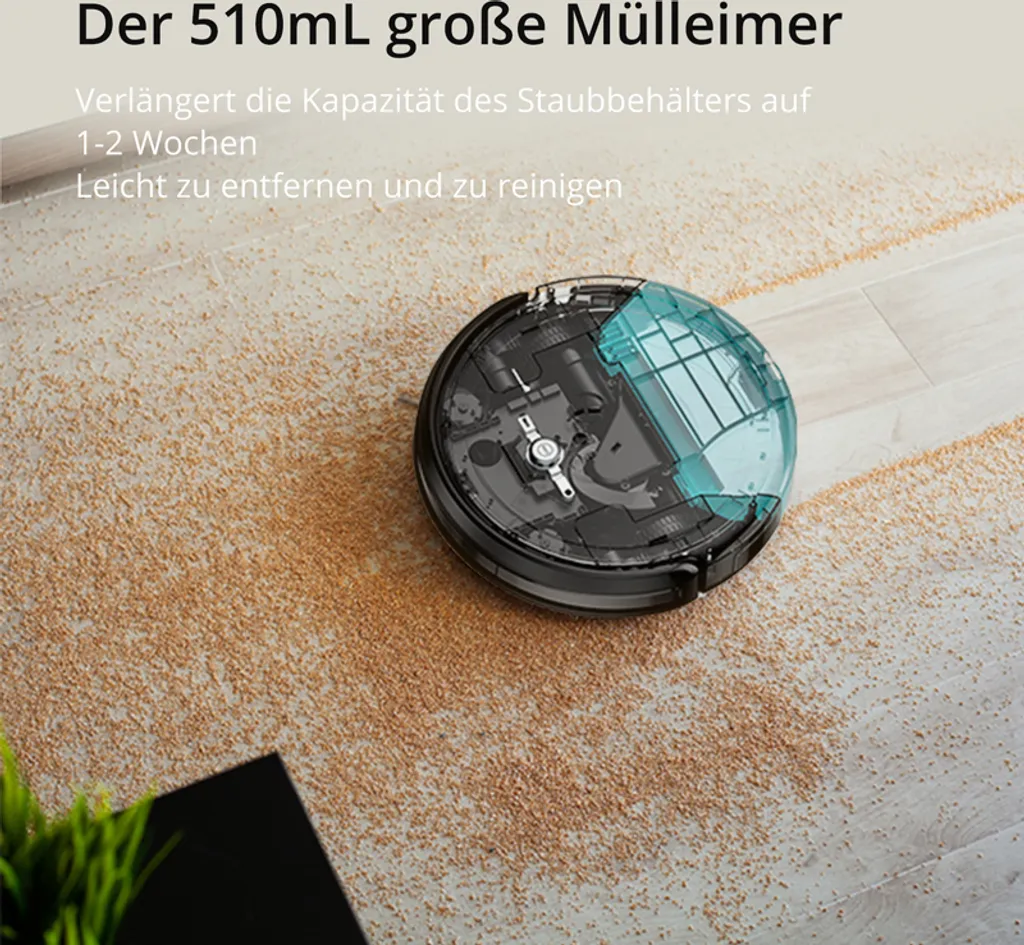 Automatische Teppicherkennung: Der Saugroboter kann problemlos Teppiche bis zu 15 cm überqueren. Auch dank der Teppicherkennung schaltet der Roboter automatisch in einen stärkeren Saugmodus, dadurch können die Schmutzpartikel drauf zuverlässig gesäubert werden.