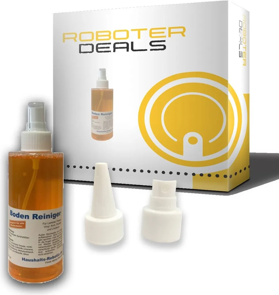 Spezieller Bodenreiniger passend für alle Saug- Wischroboter. Entweder direkt auf das Pad oder in den Wassertank geben. Der Reiniger ist im Lieferumfang mit Einfüllspitze für den Wassertank und mit Zerstäuber für das Mikrofaserpad. Die Aufsätze sind wechselbar.