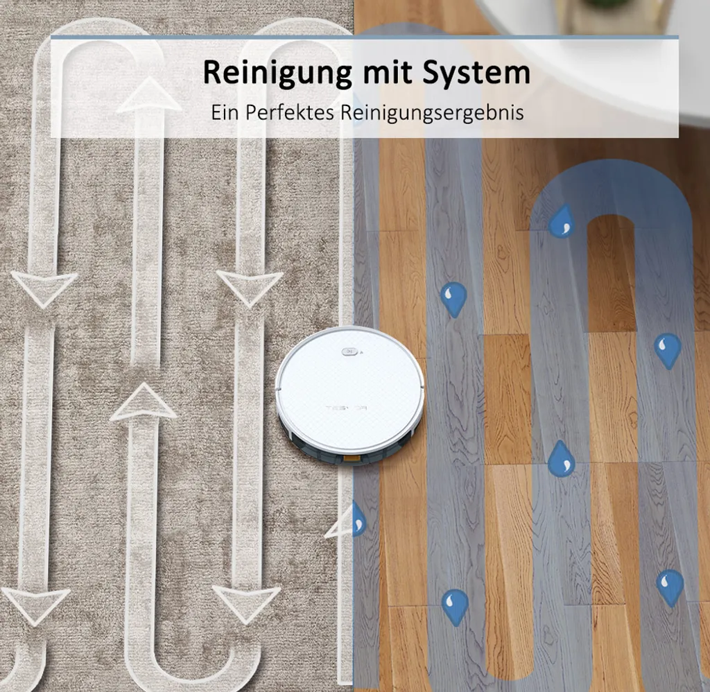 – Intelligente App Steuerung: Verwenden Sie die e neu entwickelte App für die Anzeige von Reinigungsrouten und Kartenspeicherung, Terminplanung, Reinigungszonen, Fleckenentfernung, Richtungssteuerung, Punktreinigung, Kompatibel mit Google Home und Alexa.