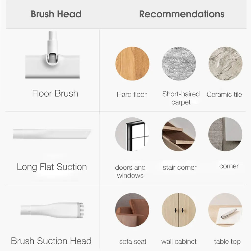 ● Allround-Reinigung, keine toten Winkel: Mit verschiedenen Arten von Aufsätzen können Sie den Staub von Sofas, Wänden, Treppen und anderen schwer zugänglichen Bereichen gründlich reinigen.