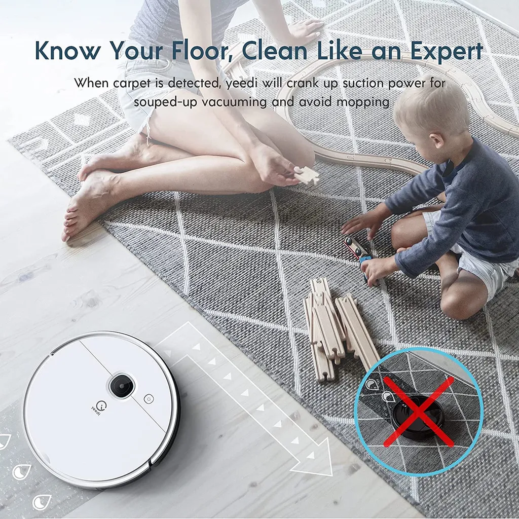 Yeedi Vac Station ist vielseitig. Er wischt zuverlässig und saugt zuverlässig gleichzeitig, um Tierhaare, Schmutz und Ablagerungen aus Ihrer Küche, Ihrem Schlafzimmer und mehr zu entfernen.