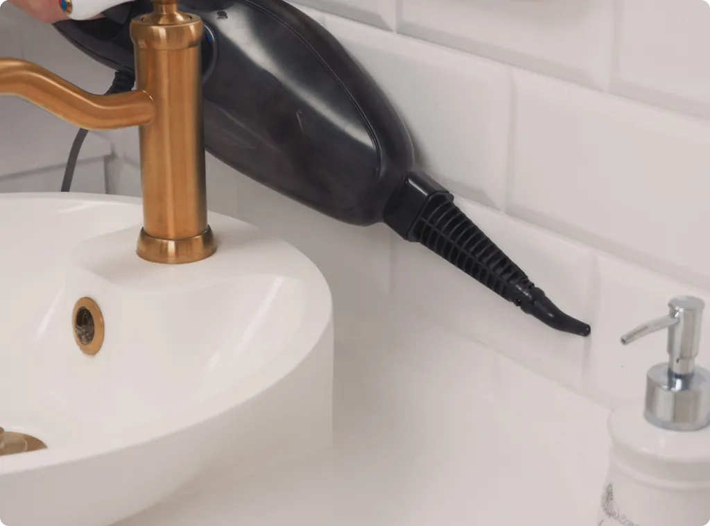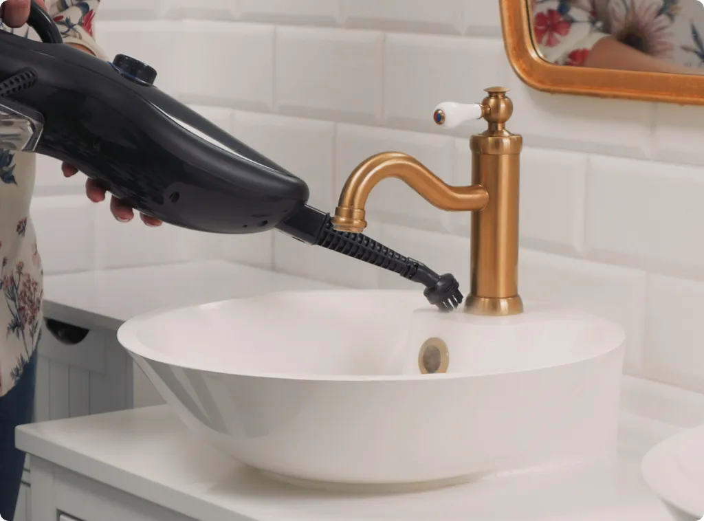 Dank des bequemen Griffes und der Möglichkeit, den Halterstiel zu entfernen, verwandelt sich Puur in Sekundenschnelle von einem normalgroßen Dampfreiniger in einen kleinen, handlichen Hochdruckreiniger.