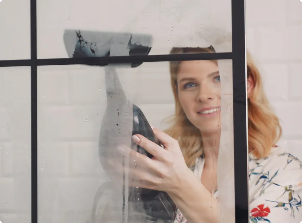 Bezüge für Glasflächen – Einfache Reinigung von Fenstern, Duschtüren und Spiegeln. Dampf entfernt leicht Seife, Handspuren und unansehnliche Flecken und desinfiziert zusätzlich die gereinigten Oberflächen.
